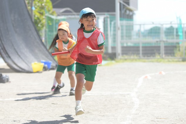 子どもたちにとっては普段の遊びでも取り組んでいる大好きなリレーです。