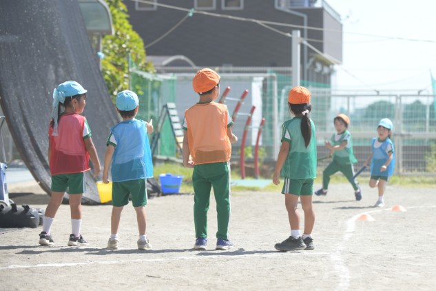 今日の年長組さんたちはリレーの練習をしていました。