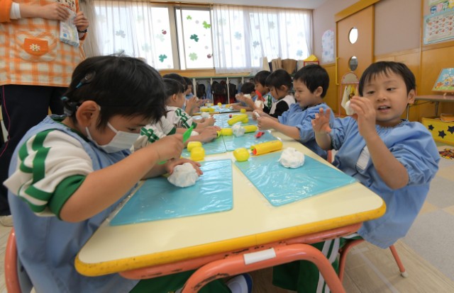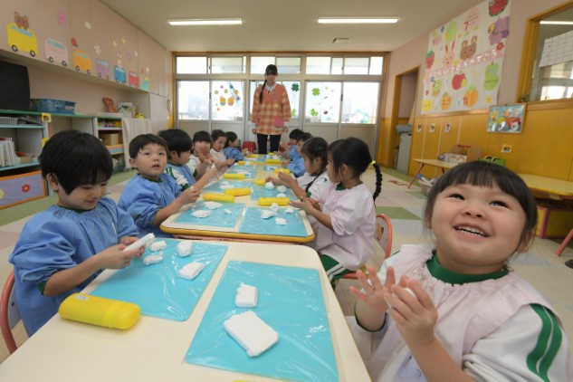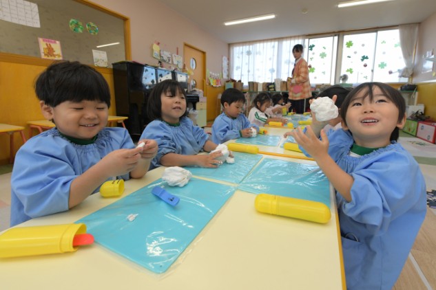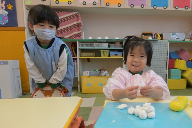 今回子どもたちに与えられたテーマは「野菜か果物」です。自分の好きなものを一つ作ってもらいます。野菜や果物といえばスタンピングの時にいろいろなものに触れましたよね。そしてジャガイモ掘りにサツマイモ掘り、ダイコン抜き そんな経験もしました。