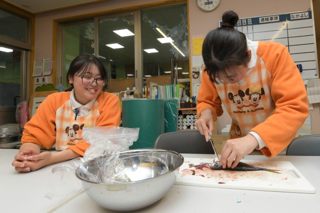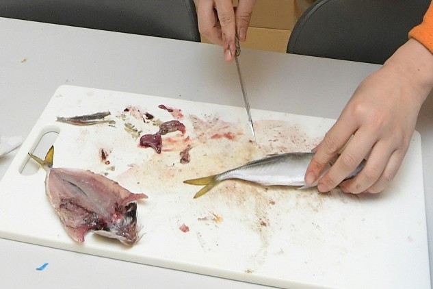 アジが全て開き終わりました。さて、何で幼稚園でこんなことをしているかというと・・・。