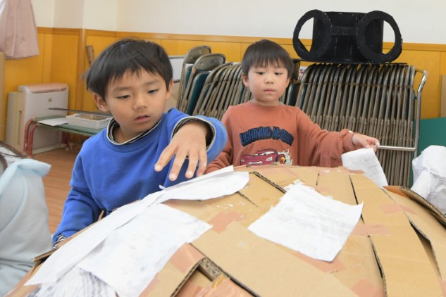 いよいよ来週から、組み上げ等を行ない形が見えてくると思います。年長さんたちの大作をお楽しみにお待ちください。