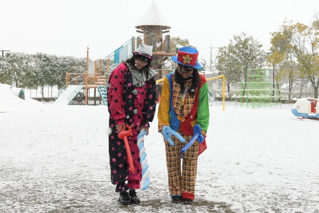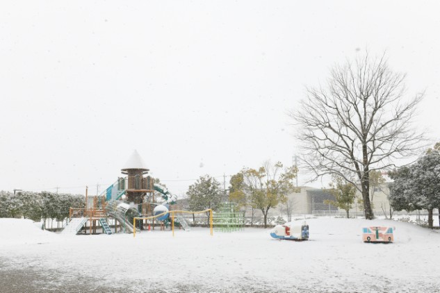 2月だというのによく降ります。園庭が白く覆われてきました。