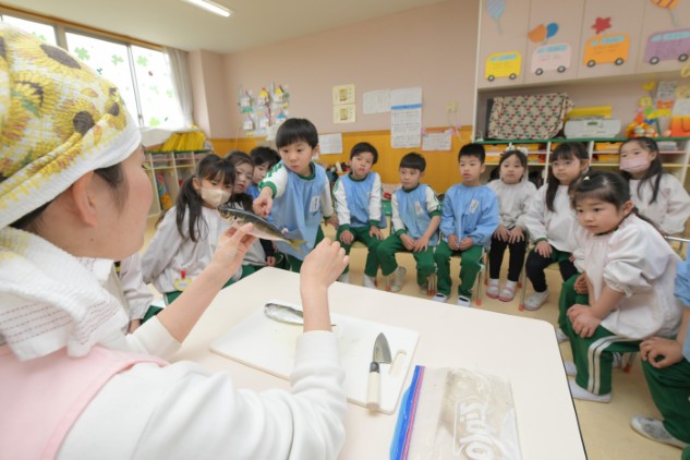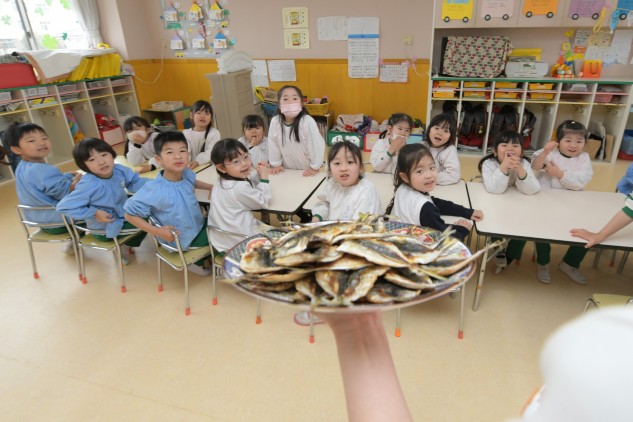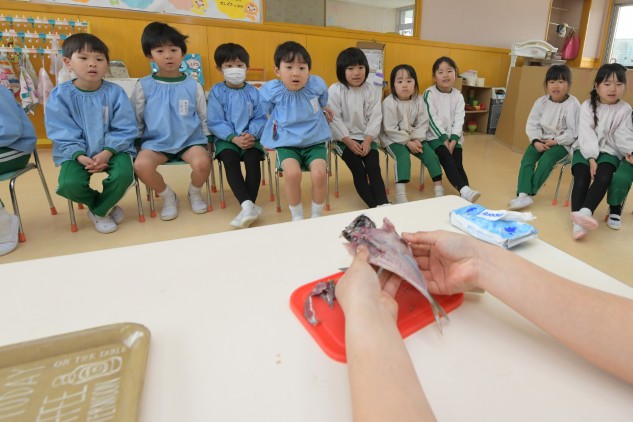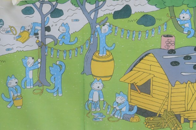 あの絵本の中でねこたちが度々魚を捕まえ干すシーンが描かれています。子どもたちになぜ魚を干すのか聞いてみると保存のためという答えが返ってきました。