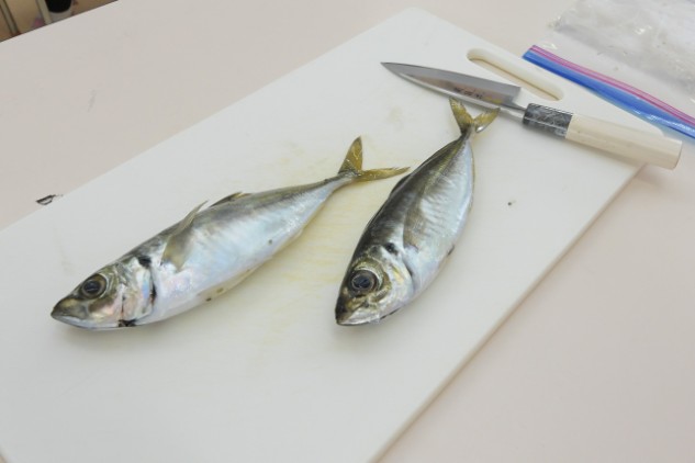 (このアジは昨日、釣ってきたアジです)