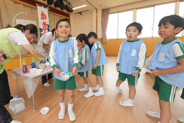 今日はかき氷を食べるには涼しい陽気となりましたが、それでも子どもたちは『食べたい!』と喜んでくれました。