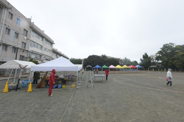 今日は朝から雨が降っていましたが、先生たちは雨具を着ての準備です。