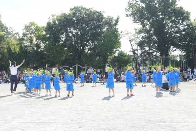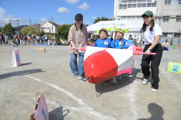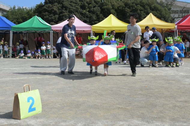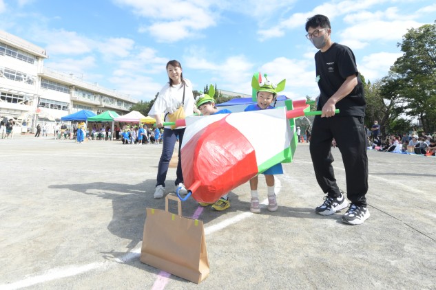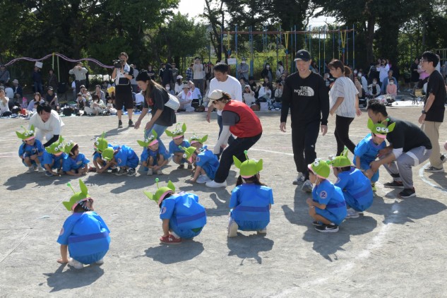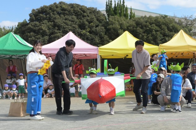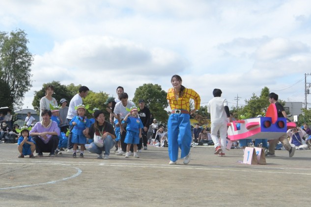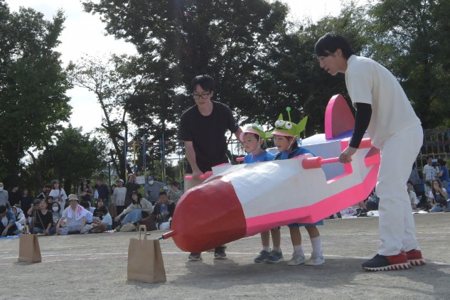年中組の親子競技は【無限の彼方へ、さあ行くぞ!】です。