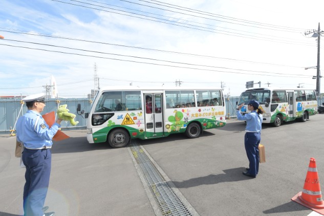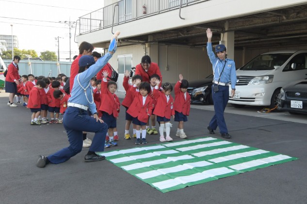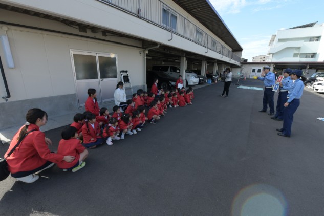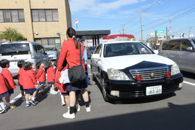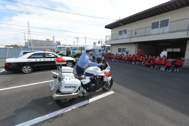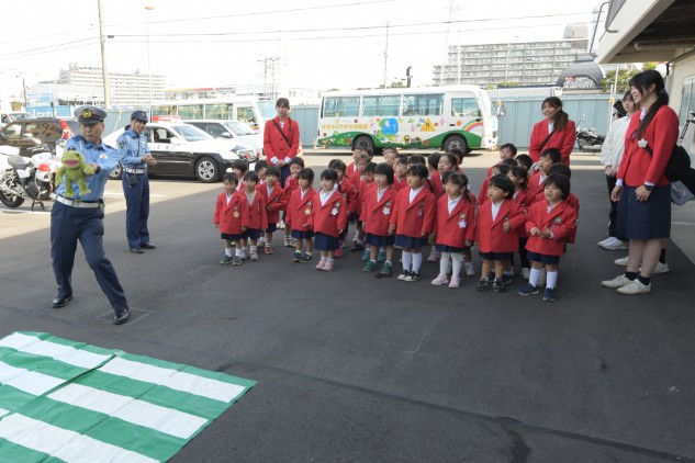 今日の年少組さんたちは幼稚園バスに乗って大宮西警察署へ・・・。