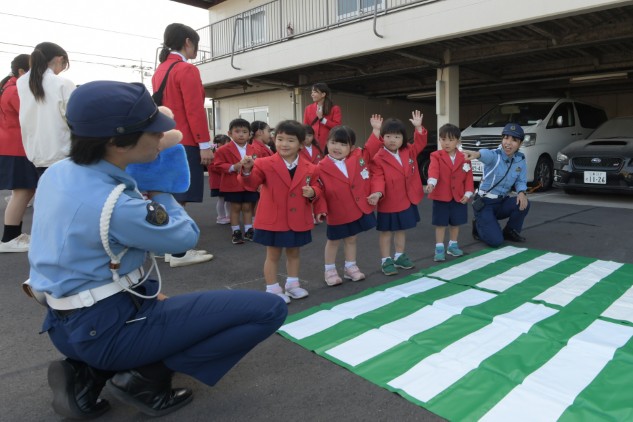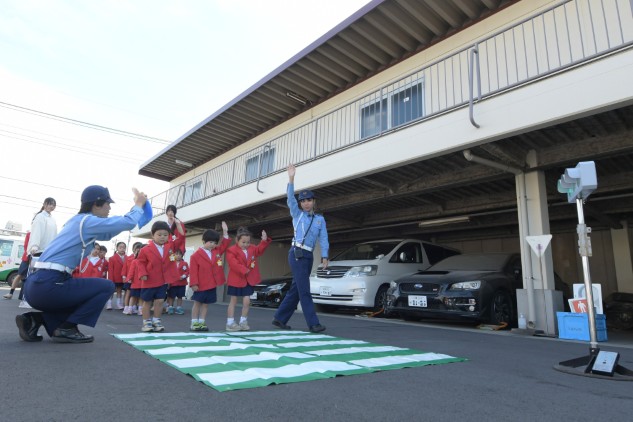 先週と同じように警察署の方々が子どもたちの為に交通安全指導をしてくれました。