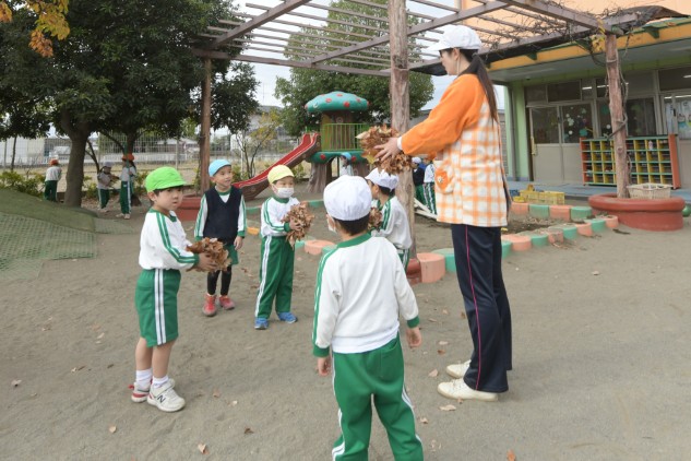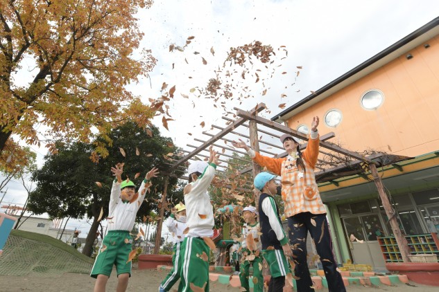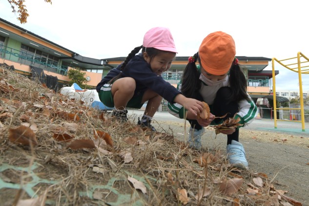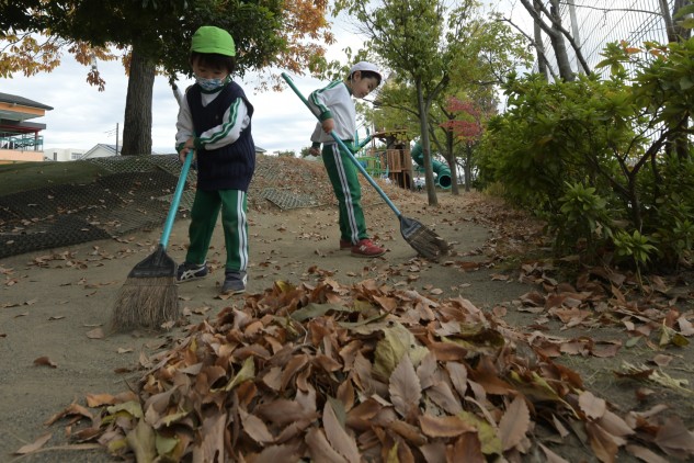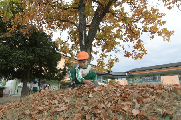 幼稚園にとって落葉はゴミではありません。子どもたちの感性を刺激するアイテムの一つです。