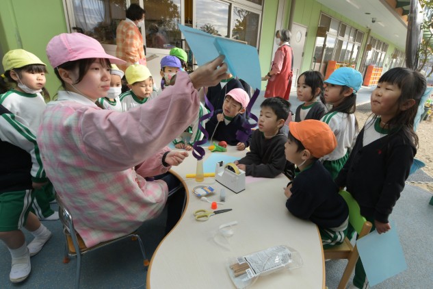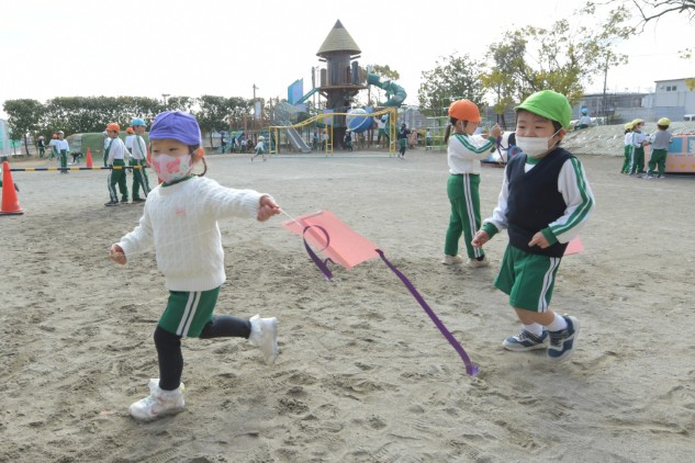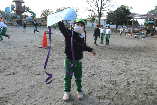 子どもたちにタコの唐揚げ作りは難しいと思いますが、凧なら簡単に作れて上がります。皆も凧上げに挑戦してみてください。