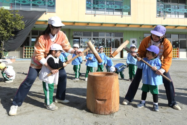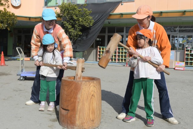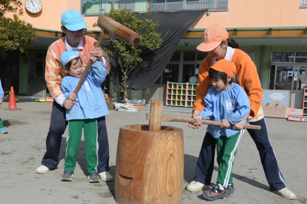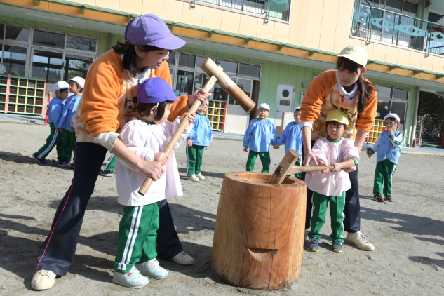 お正月にはおもちをたくさん食べたかと思いますが、今日は皆でおもちを作ってみましょう。