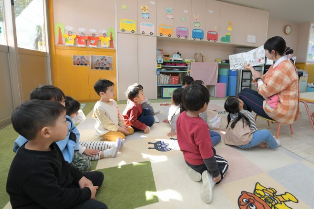 年少組さんで絵本を読んでいます。