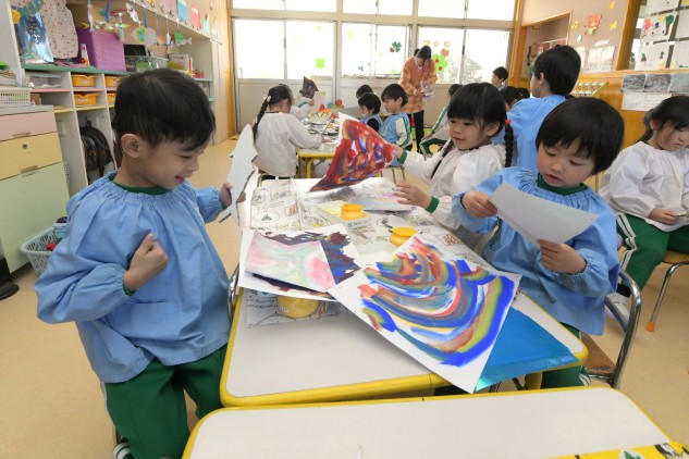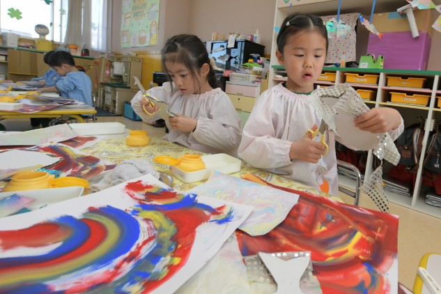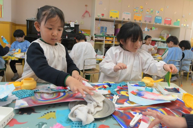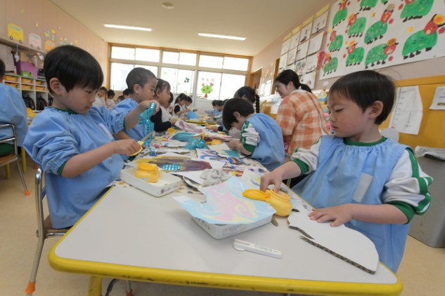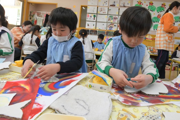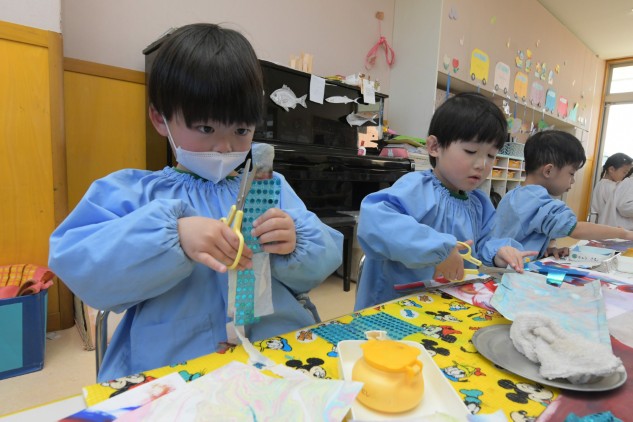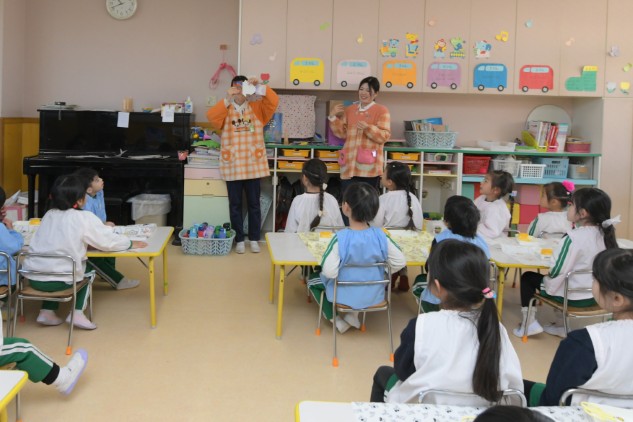 今日の年中組さんたちはお部屋での活動です。
