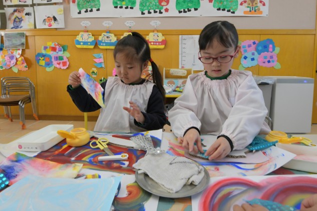 色の素材となるのは、年中さんたちが探し求めて色遊びをした「にじいろ」です。