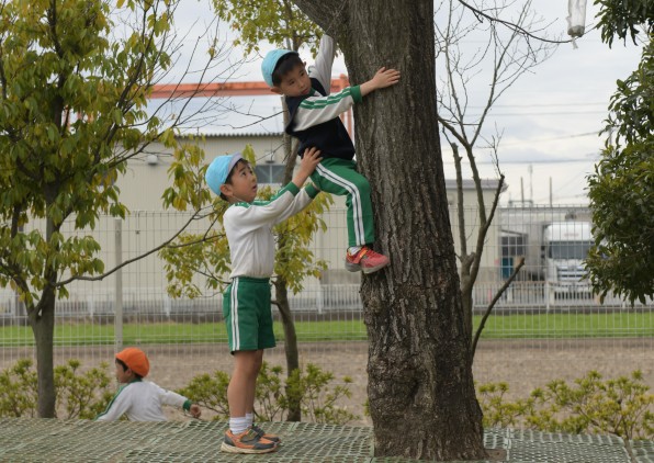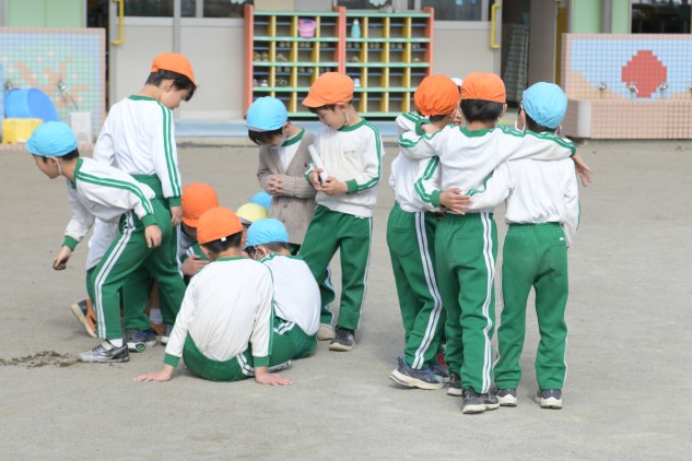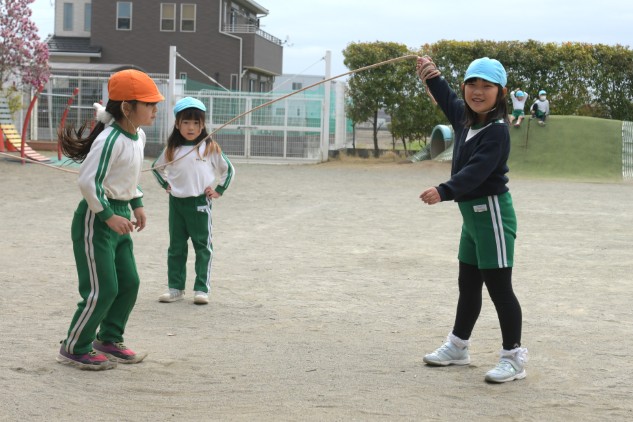 月曜日に卒園式を迎える年長さんたちにとって今日は皆と共に園庭で遊べる最後の日です。